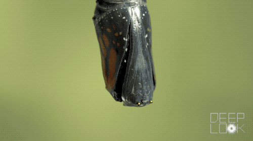 The pupal stage is usually considered a resting phase, although many active changes are occurring internally, hidden from view. The larval tissues and organs break down entirely, then reorganize into the adult form. After the reorganization is complete, the pupa molts to reveal a mature adult with functional wings.