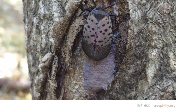 为了除掉斑衣蜡蝉,宾夕法尼亚准备将臭椿列入B级有毒杂草进行消灭,甚至花费大量人力物力教育居民如何识别斑衣蜡蝉、如何消灭虫卵,以及如何上报虫害。