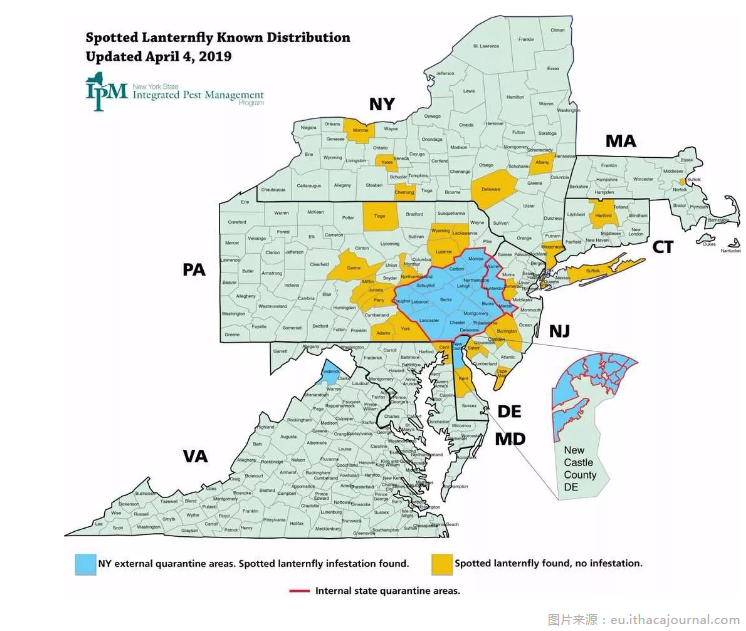 尽管已经加强了杀虫、检疫工作,但斑衣蜡蝉还是扩散到了美国另外六个州。