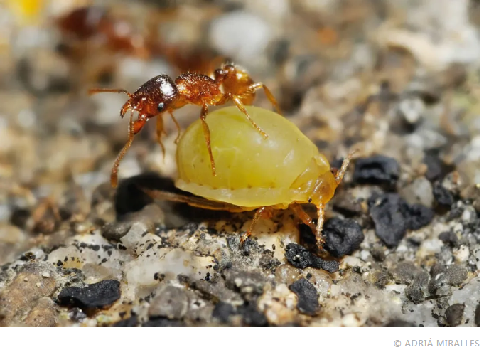 瘿绵蚜科Pemphigidae的麦拟根蚜Paracletus cimiciformis常生活在小麦根际,为害根部使叶片由基部逐渐向上部枯黄。冬季来临时,它还会在蚁室中与蚂蚁共生过冬。