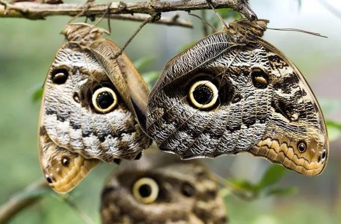 这些眼斑看起来有些凶神恶煞,其目的就是欺骗捕食者,让对方误认为有一只动物正凶巴巴地盯着它。