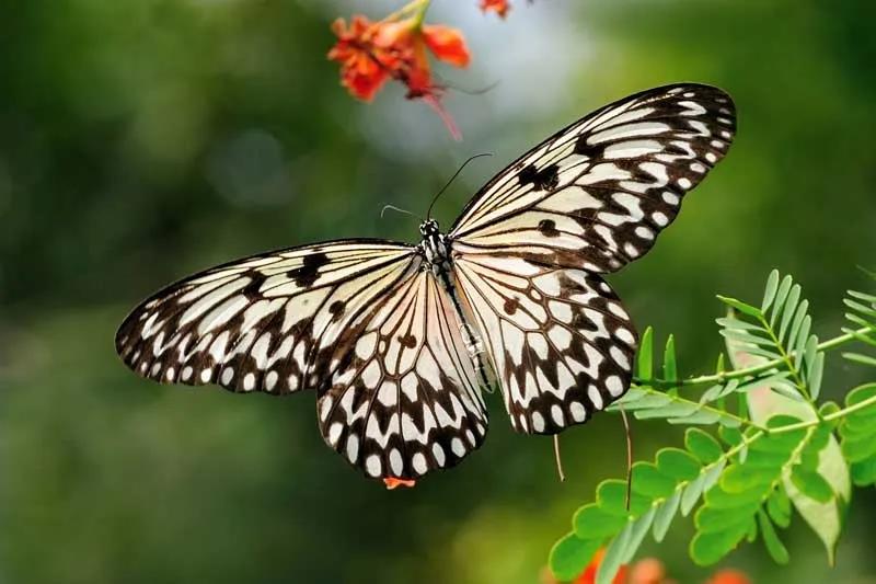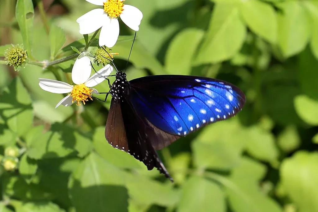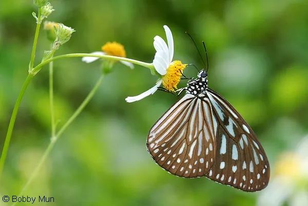 斑蝶主要分布在热带地区,是中型或大型的美丽蝶种,翅展50~180 mm,体多黑色,头部和胸部有白色小点。