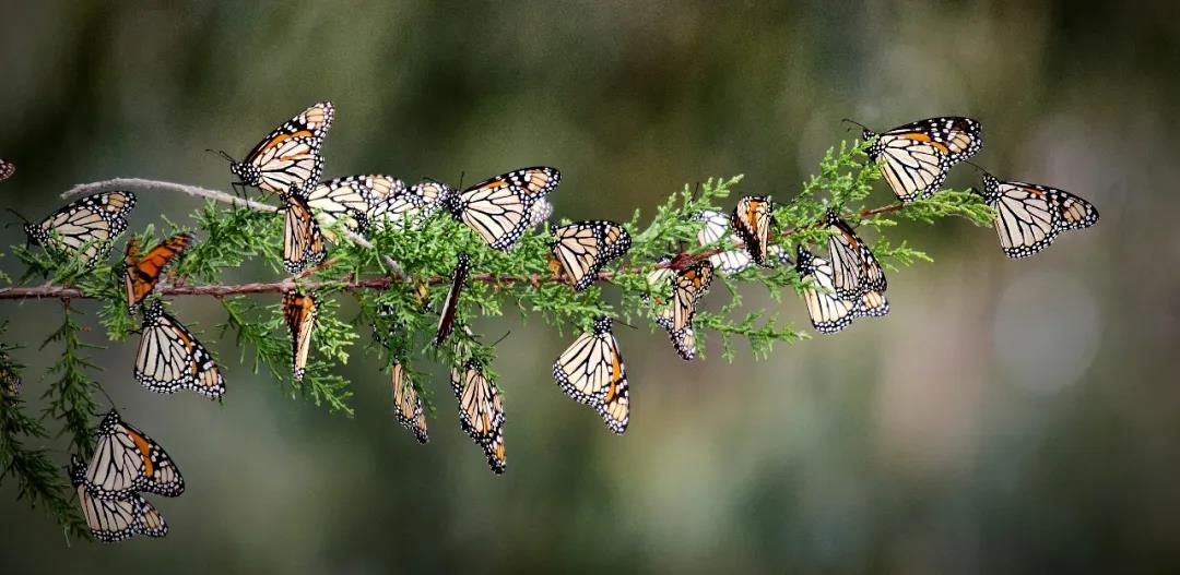 在每当冬天来临之前,君主斑蝶从加拿大南部和北美地区,成群结队、浩浩荡荡地飞向美国加州中南部和墨西哥中西部的冷杉林,全程可达4800多公里。