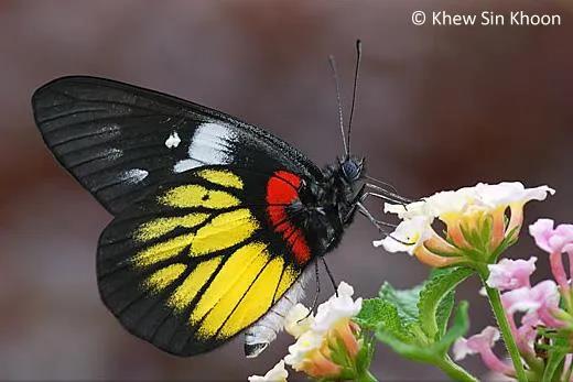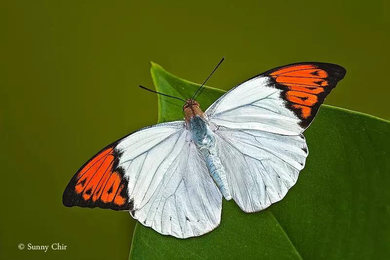 有些种类体为红色或橙色,有黑色斑纹,显得鲜艳夺目。如斑粉蝶属Delias: