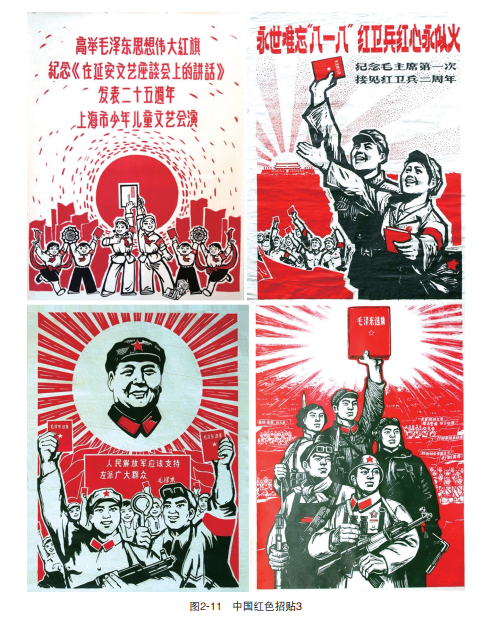 这一时期的招贴创作,在画面图形形象的运用上呈现出一种“符号化”的倾向。招贴上的每一个图形在被运用时都必须有极为明确的政治含义,不可以有任何转换或变异。太阳等于领袖,向日葵代表“红心向党”,拳头和笔象征着打击和批判。而且图形和图形的组合也是极有“规则”的,各种不同的图形组合常常有着文字或因果等方面的语义联系,如“葵花向阳”“大海航行靠舵手”等.