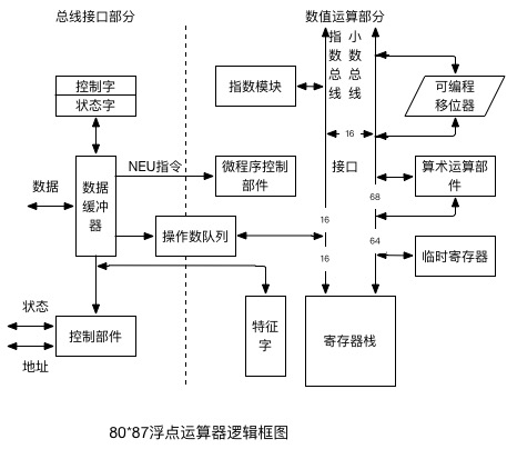 浮点运算部件通常由阶码运算部件和尾数运算部件组成,其各自的结构与定点运算部件相似,但阶码部分仅执行加减法运算。其尾数部分则执行加减乘除运算,左规时有时需要左移多位。