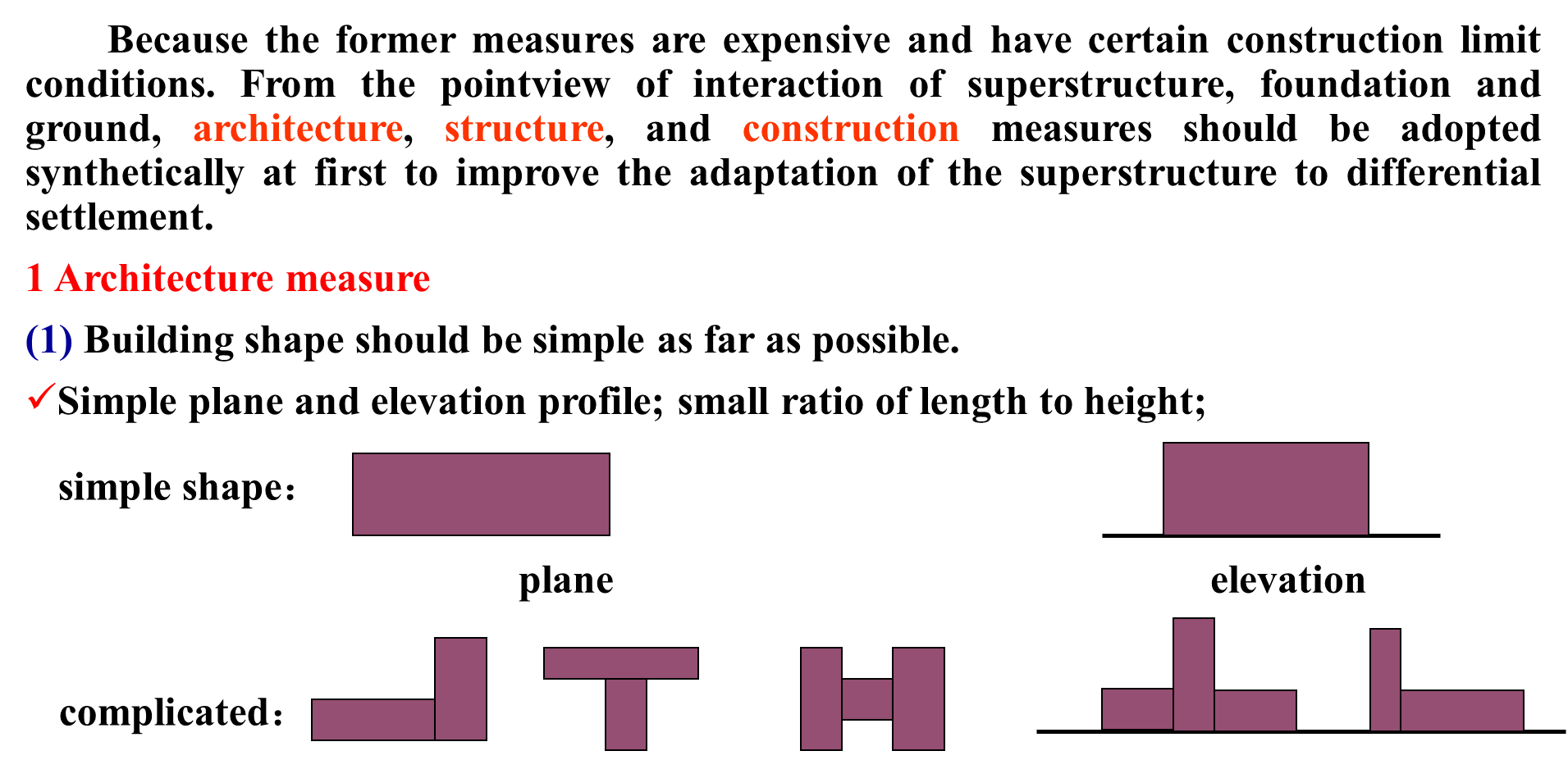 Measurements to reduce the differential settlement