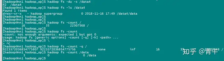 hadoop fs -count / #显示HDFS根目录在物理空间的信息