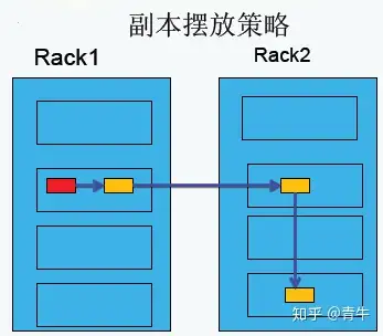 第二副本:放置在于第一个副本不同的机架的节点上;