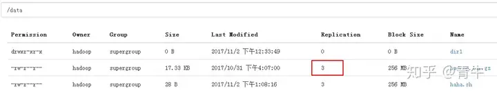 第三个数值表示该目录下文件所占的空间大小,这个大小是不计算副本的个数的。