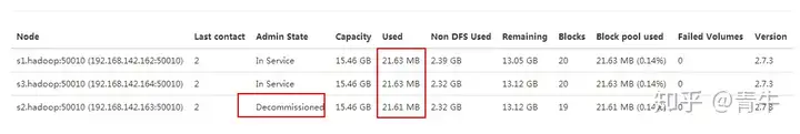 5)当所有的要退役的节点都报告为Decommissioned,数据转移工作已经完成