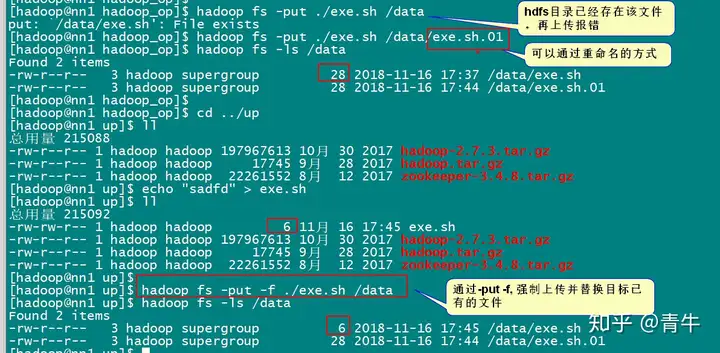 #当上传时,hdfs存在同样的文件名时,会报文件已存在错误。