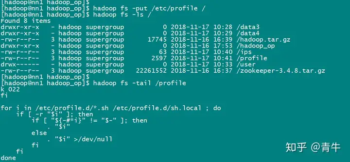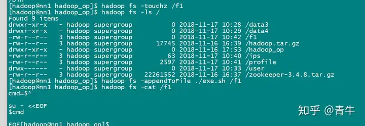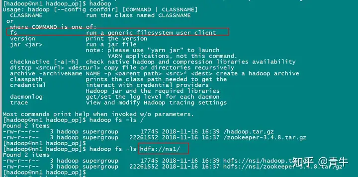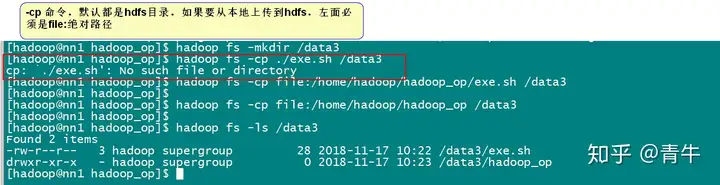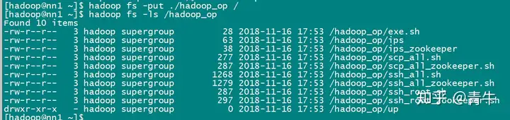 hadoop fs -put /home/hadoop/test.txt hdfs://ns1/