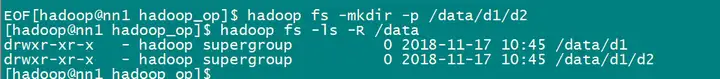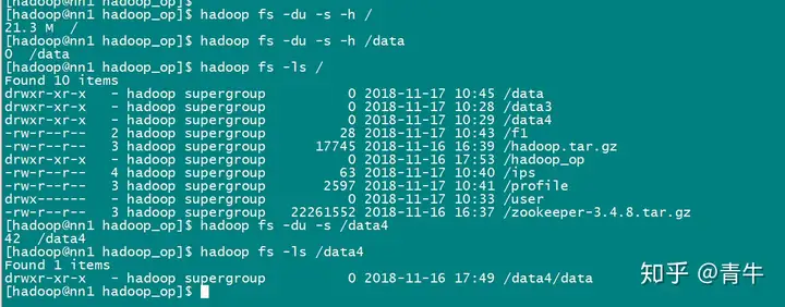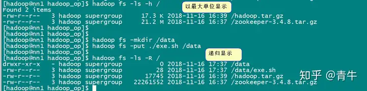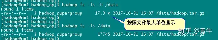 hadoop fs -ls -h / #文件大小显示为最大单位