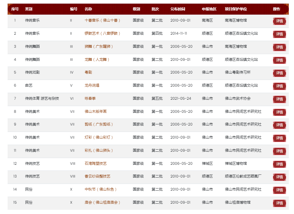佛山市国家级非物质文化遗产名录