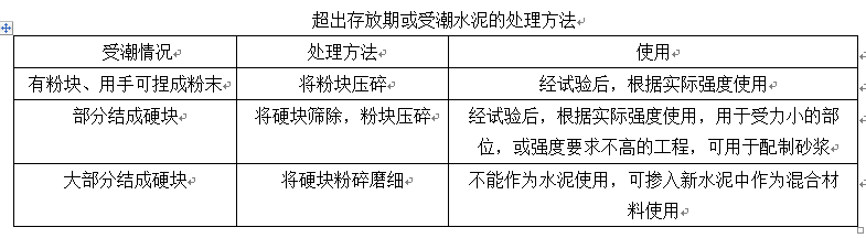 水泥存储期过长,其活性将会降低。一般存储3个月以上的水泥,强度约降低10%~20%。存放期超过三个月的通用水泥和存放期超过一个月的快硬水泥,使用前必须复验,并按复验结果使用。
