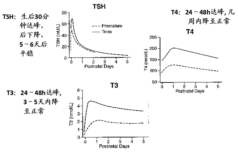 胎儿出生后足月TSH, T4, T3和 rT3的合成和分泌