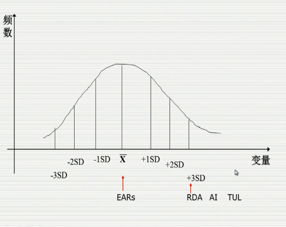 ▪ 平均需要量EAR,可以满足某一特定性别、年龄和生理状态群体中对某营养素需要量的平均值,摄入量达到EAR水平时可以满足群体中50%个体的需要