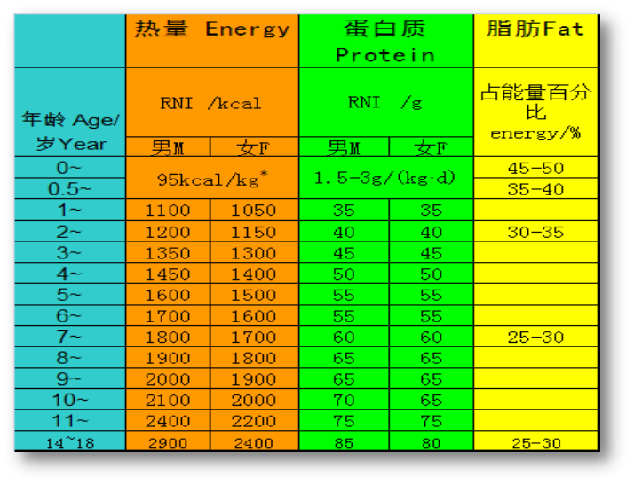 1.基础代谢:年龄越小,所需能量越高,55-25kcal/kg d