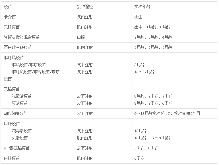 儿童常规疫苗免疫接种程序(第一类疫苗)