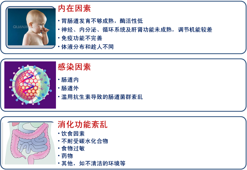 发病机制:细菌、病毒、消化不良