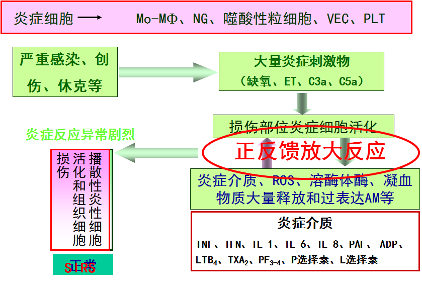 SIRS实质:机体过多“瀑布式”释放炎症介质: