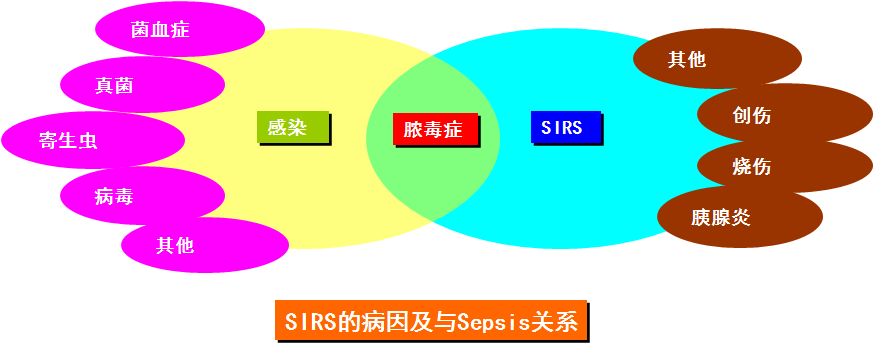 感染所致的为脓毒症(sepsis);非感染如创伤、烧伤、窒息等所致临床表现近似脓毒症但不应称为脓毒症,而称SIRS