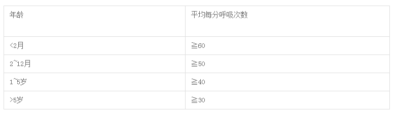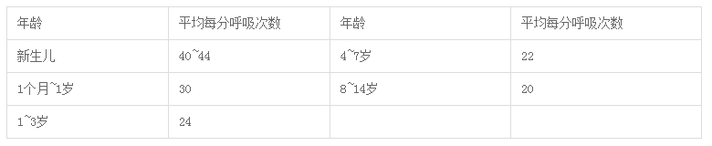 不同年龄小儿呼吸频率
