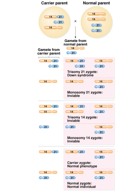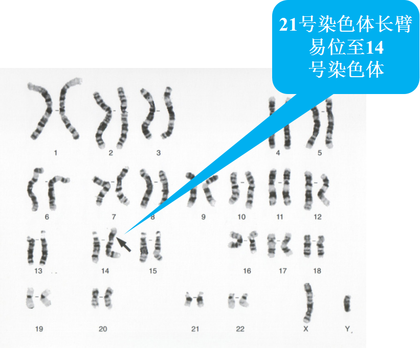 ▪ 易位型(例如:46,-14,+t(14q;21q, 4% )