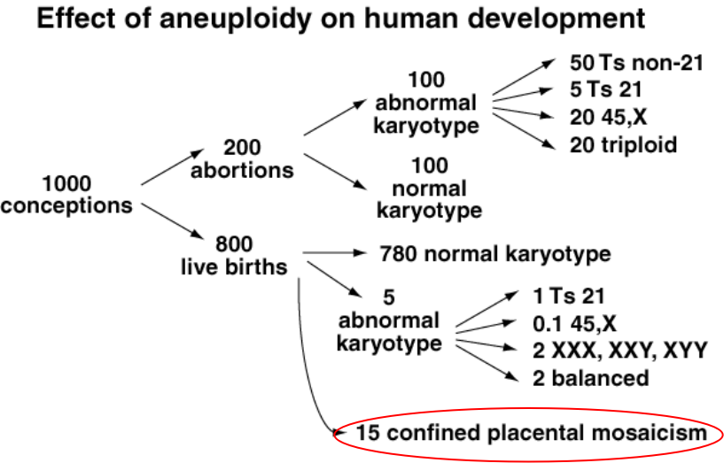 ▪ Nearly 2% of live births are mosaic aneuploids, but only in the placenta; thus, extra-embryonic tissues are remarkably tolerant to the effects of aneuploidy.