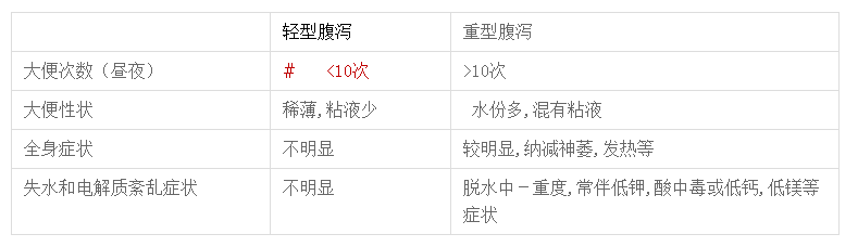 轻型和重型腹泻