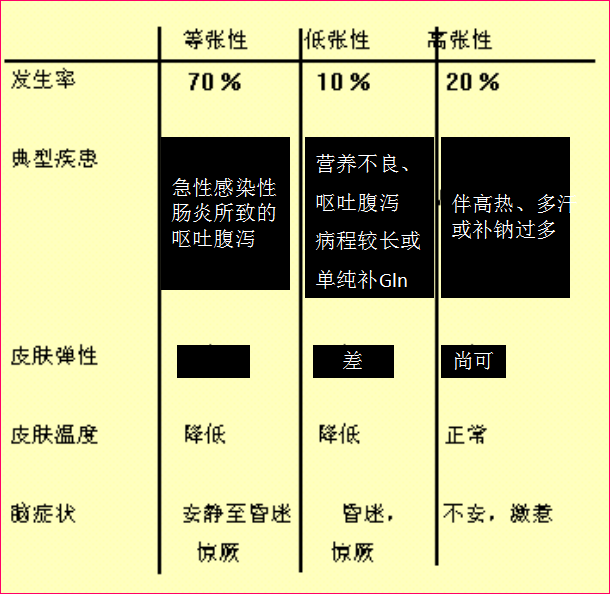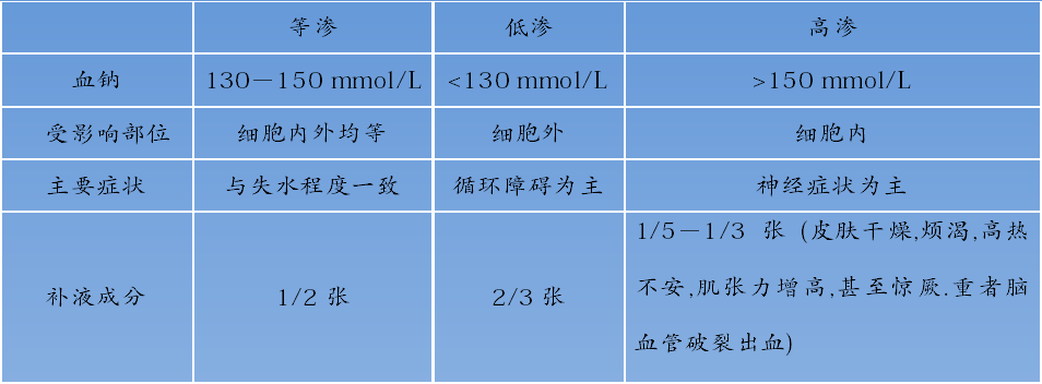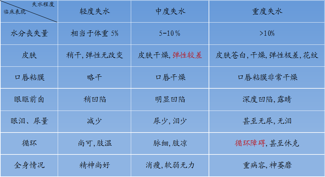 轻、中、重度失水的临床表现