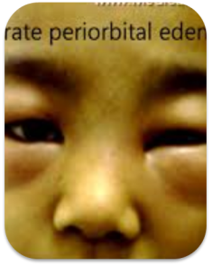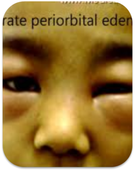 3天前排尿深茶色,出现眼睑浮肿,排尿量减少。今日出现头痛,无呕吐,无呼吸困难。