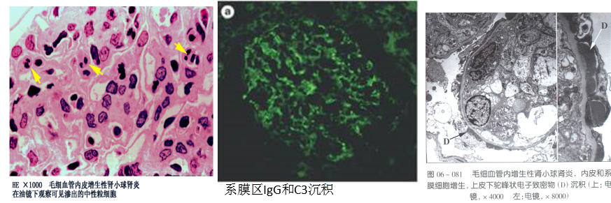 ⑥ 肾组织病理:毛细血管内增生性肾小球肾炎