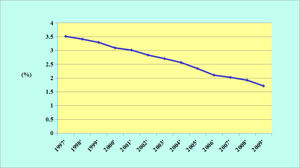 5岁以下儿童 中、重度营养 不良的比重 (%)