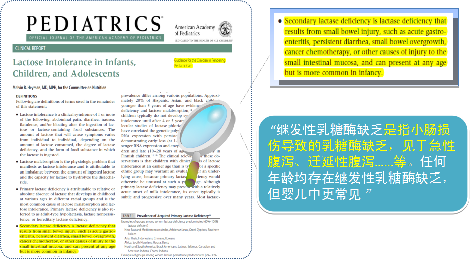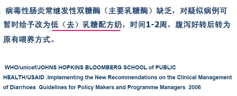AAP 2006年指南:小儿急性腹泻均易导致继发性乳糖酶缺乏,婴儿中更常见