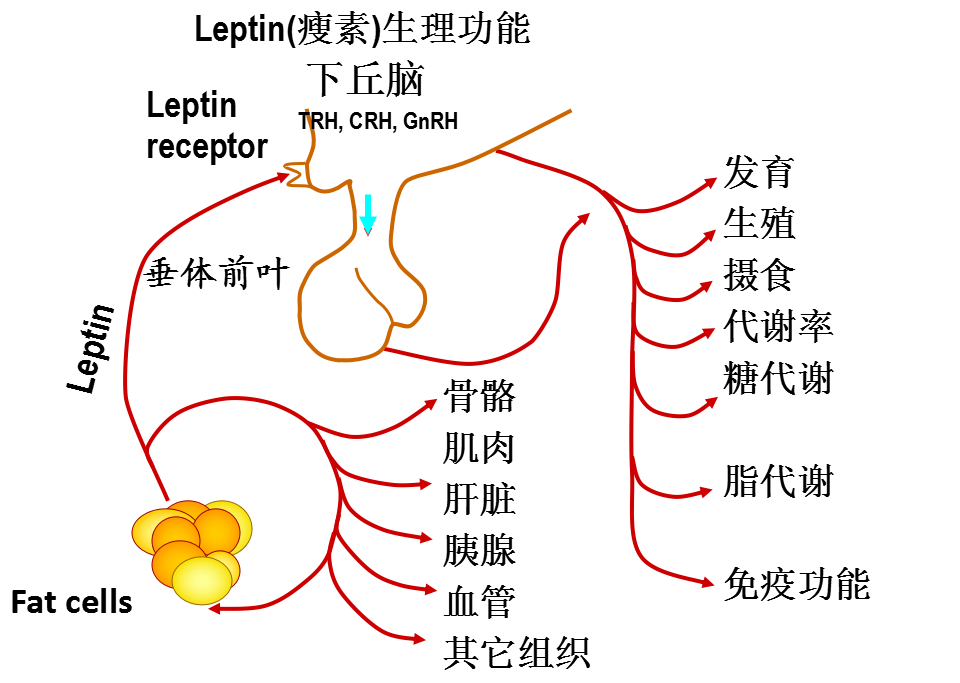√ 功能:调节能量摄入(食欲大小)和能量支出(多动或少动),突变个体嗜食和早发性极度肥胖, 伴T2DM及雌雄性不育