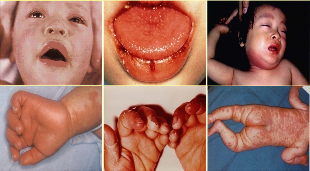 Hard edema or erythema of hand & foot in acute phase,desquamation of the fingers ortoes in convalescence