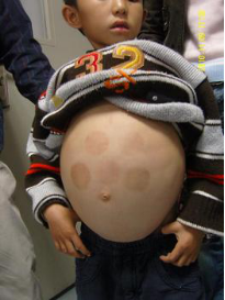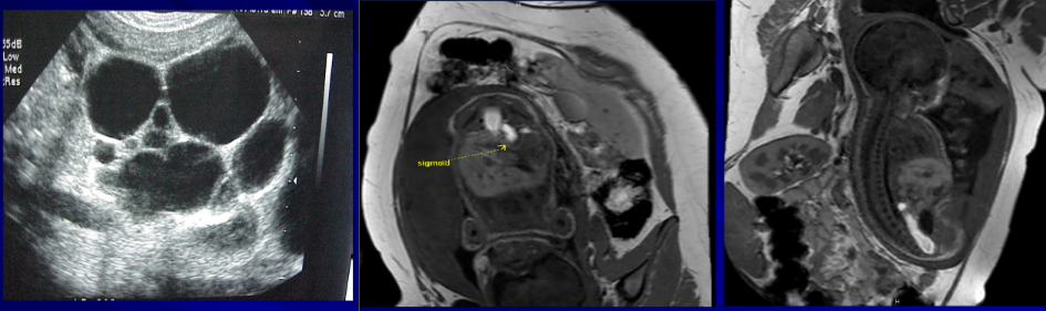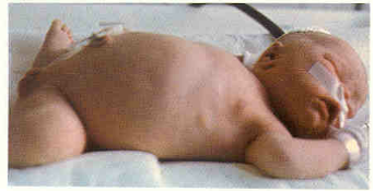 - 超声 胎腹膨隆;下腹可见“双叶征”;羊水过多
