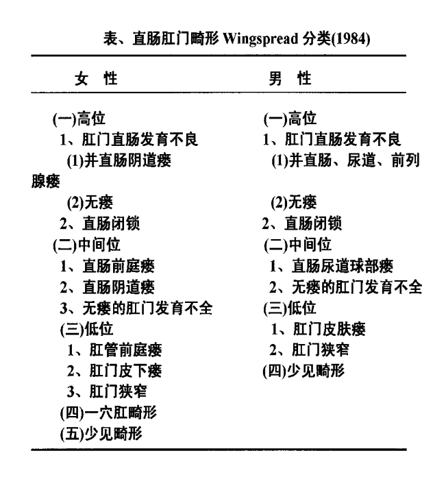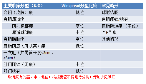 肛门直肠畸形国际诊断分型标准(Krinkenbeck,2005)
