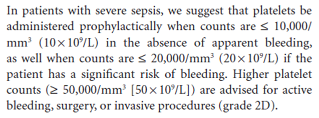 -活动性出血、外科手术、侵入性操作等,plt≥50,000/mm3