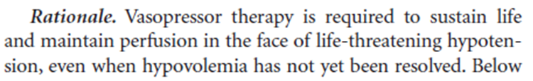 有些情况下,复苏开始即使低血容量还未纠正,就需要正性肌力药和升压药以维持灌注压