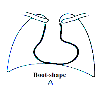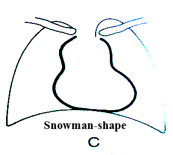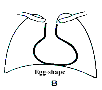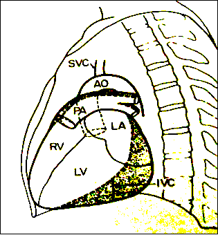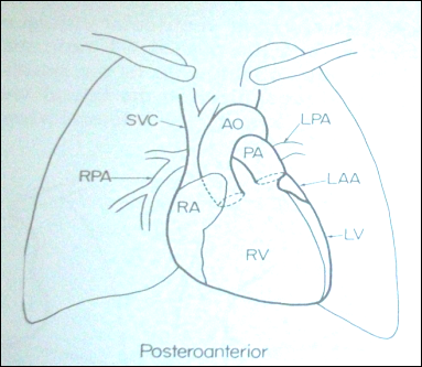 正常心脏胸部正位片示意图(A-P) 正常心脏胸部侧位片示意图(Lateral)