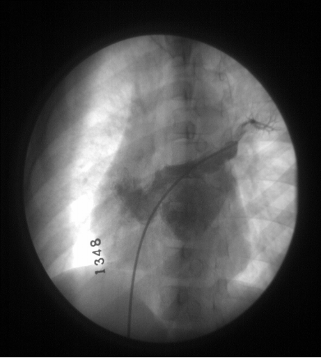 △ 左上肺静脉造影肝锁位显示继发孔型 ASD