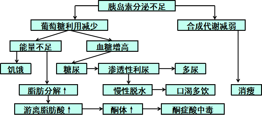 由于胰岛素绝对或相对缺乏所致的糖、脂肪、蛋白质代谢紊乱
