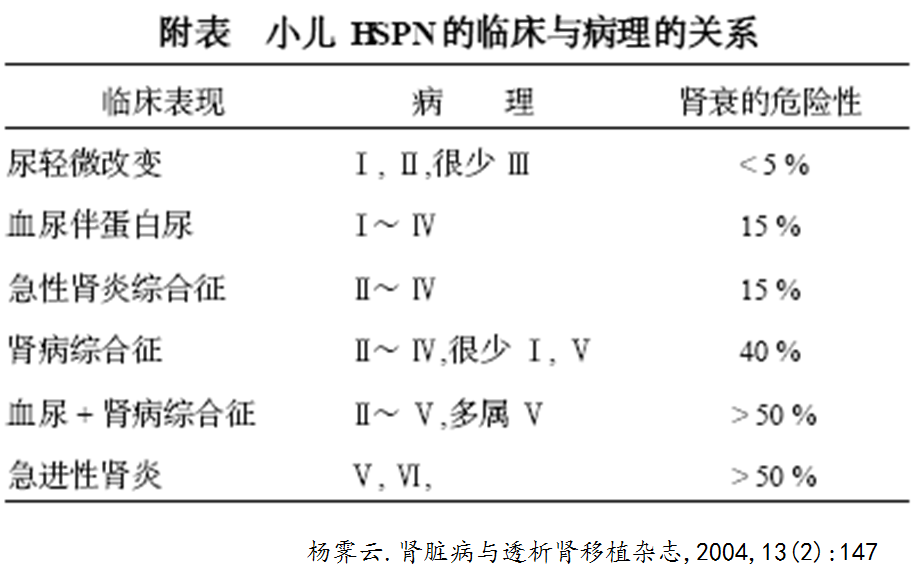 HSPN预后与第一次病理不一定相关,临床治疗效果和规律随访,影响其预后