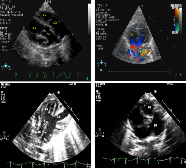 正常情况:肺动脉瓣下圆锥发育,肺动脉位于左前
