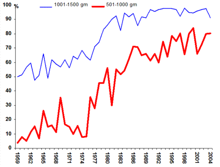 发达国家VLBW和ELBW存活率