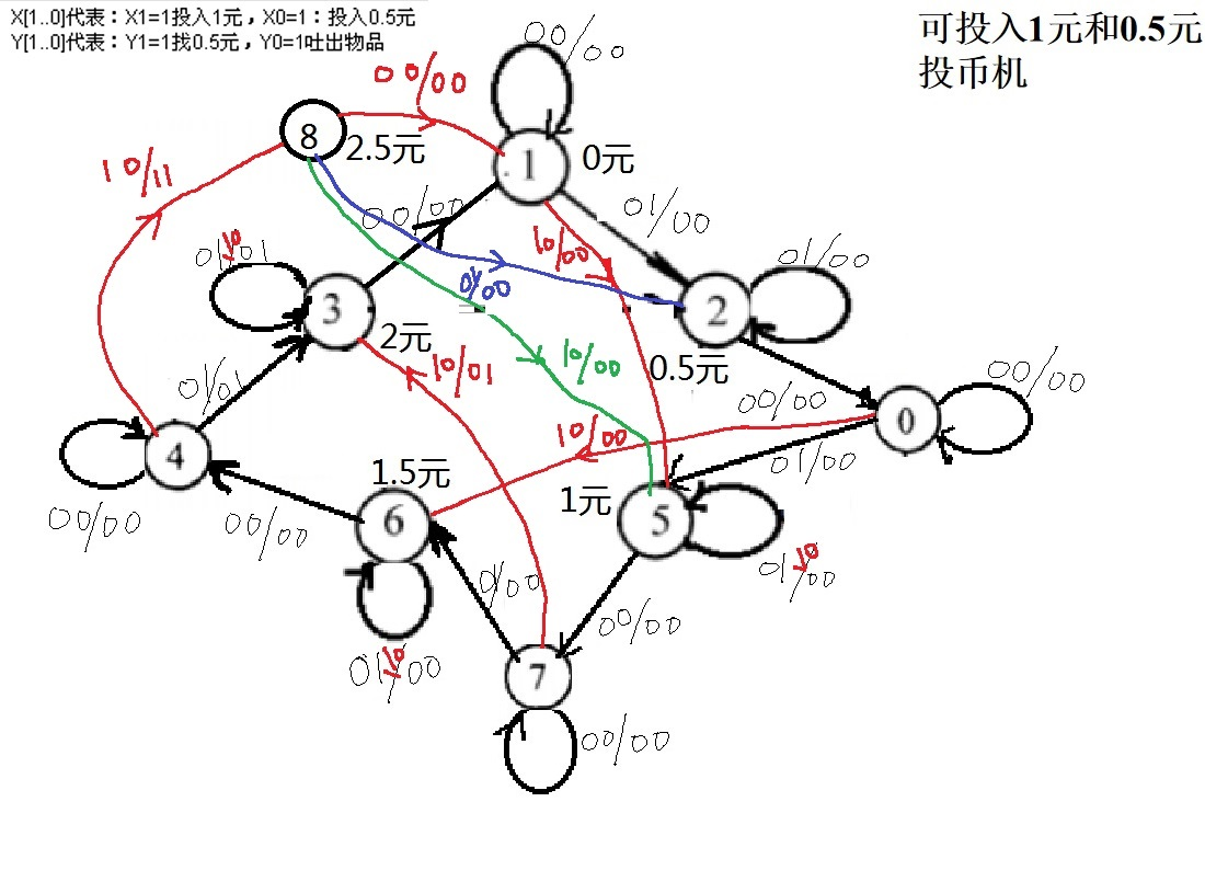 1.只接收0.5元硬币的投币机,输出信号是出2元的饮料。