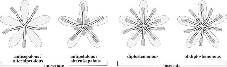 Figure 9.24. Stamen cycly (uniseriate or biseriate) and position.